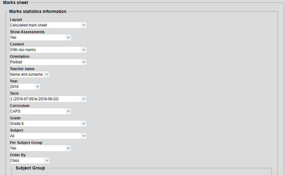 Would it be possible to select the terms that you want to print this report for. Our teachers need a report at the end of the year with all the assessments / term. Instead of printing this report for one term only, maybe have the option to select the Terms you want the report for either one term or all 4 terms? The Composite sheet does show the assessments